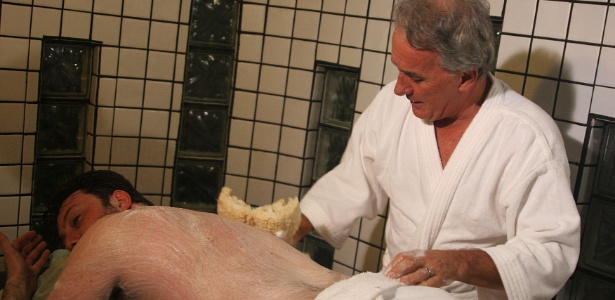 No pragrama de Otávio Mesquita "Okay Pessoal!" na madrugada desta quinta-feira, o apresentador ousa um pouco e dá um banho em seu colega de emissora Danlo Gentili em uma massagem ensaboante deliciosa. Confira a foto abaixo.